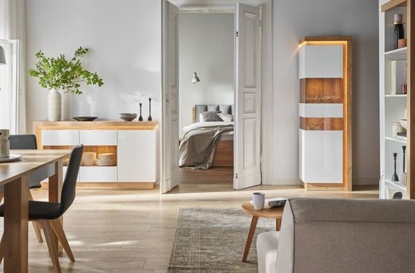 Modne kolory mebli w 2024 roku idealnie pasują do wystroju jasnych przedpokojów, salonów, jadalni oraz pokojów sypialnianych. Są zatem doskonałym wyborem dla osób ceniących sobie przytulny, a zarazem elegancki styl w aranżacji wnętrz. Ich jasne odcienie frontów oraz elementy imitujące drewno kojarzą się przede wszystkim z przestrzenią, otwartością oraz czystością. Wszystko to sprawia, że pomieszczenia w obecnych trendach wnętrzarskich w 2024 roku są bardziej widne, a co za tym idzie, przyjemniejsze dla niejednego oka.