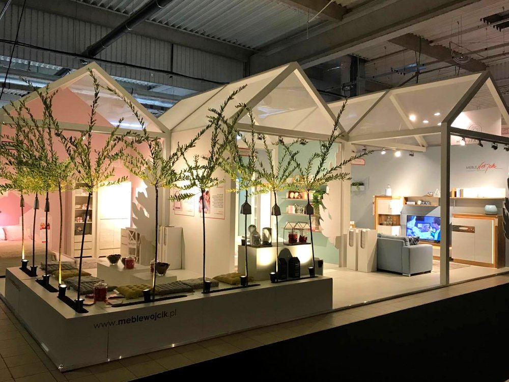 W aranżacji postawiliśmy na jasną, pastelową tonację. Dodatkowo stoisko zostało podzielone na trzy sekcje, z których każda przedstawiała oddzielną przestrzeń domu. Różowy pokój dziecięcy urządzony został kolekcją Angel, przestrzeń sypialniana systemem Linate, a pokój dzienny i jadalnia programem Lyon Jasny. Całość uzupełniały akcenty inspirowane naturą, a oświetlenie nadawało stylowy i przytulny klimat prawdziwego domu.
