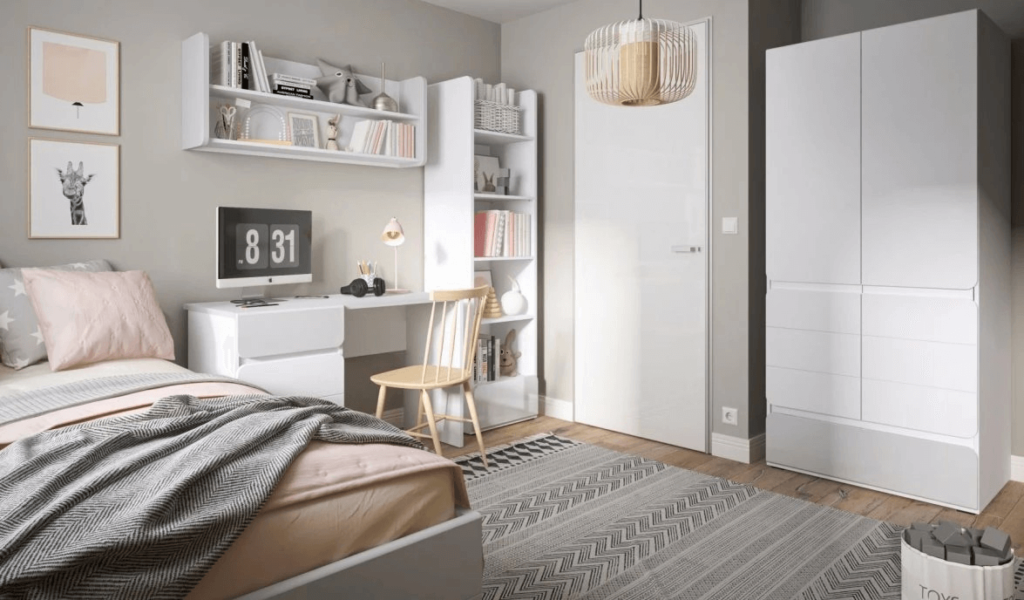 W pokoju rodzeństwa doskonale sprawdzają się meble modułowe dla dzieci, które można dowolnie zestawiać i rozbudowywać w miarę potrzeb. Gdy różnica wieku między dziećmi jest niewielka, łatwiej dobrać wspólne rozwiązania, ale nawet przy większej można stworzyć komfortową przestrzeń dostosowaną do indywidualnych wymagań każdego z nich. Kolekcja Angel świetnie sprawdza się w takich przypadkach, oferując szeroki wybór brył, które można dopasować zarówno do kącika malucha, jak i przestrzeni dla starszego dziecka. Pojemne szafy i komody ułatwią przechowywanie rzeczy obu pociech, a biurka o ponadczasowym designie pozwolą stworzyć ergonomiczne miejsce do nauki. Dzięki neutralnej stylistyce meble z tej serii harmonijnie wpisują się w każdą aranżację, niezależnie od wieku użytkowników.