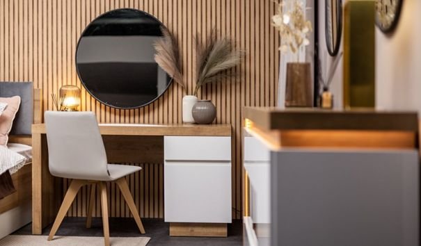 Aktualny trend w aranżacji salonu, to połączenie funkcjonalności oraz stylu. Zwróćmy tu uwagę na wygodne meble wypoczynkowe, wykonane z miękkich materiałów, odpowiedni wybór krzeseł, stołu, czy kanap. Istotną rolę, odegrają też tkaniny o przytulnym i nietuzinkowym wyglądzie. Nowością będą meble do domowego biura, dzięki którym można zaaranżować w salonie mini gabinet. Warta uwagi jest tu Kolekcja Summer, czy Lyon Jasny.