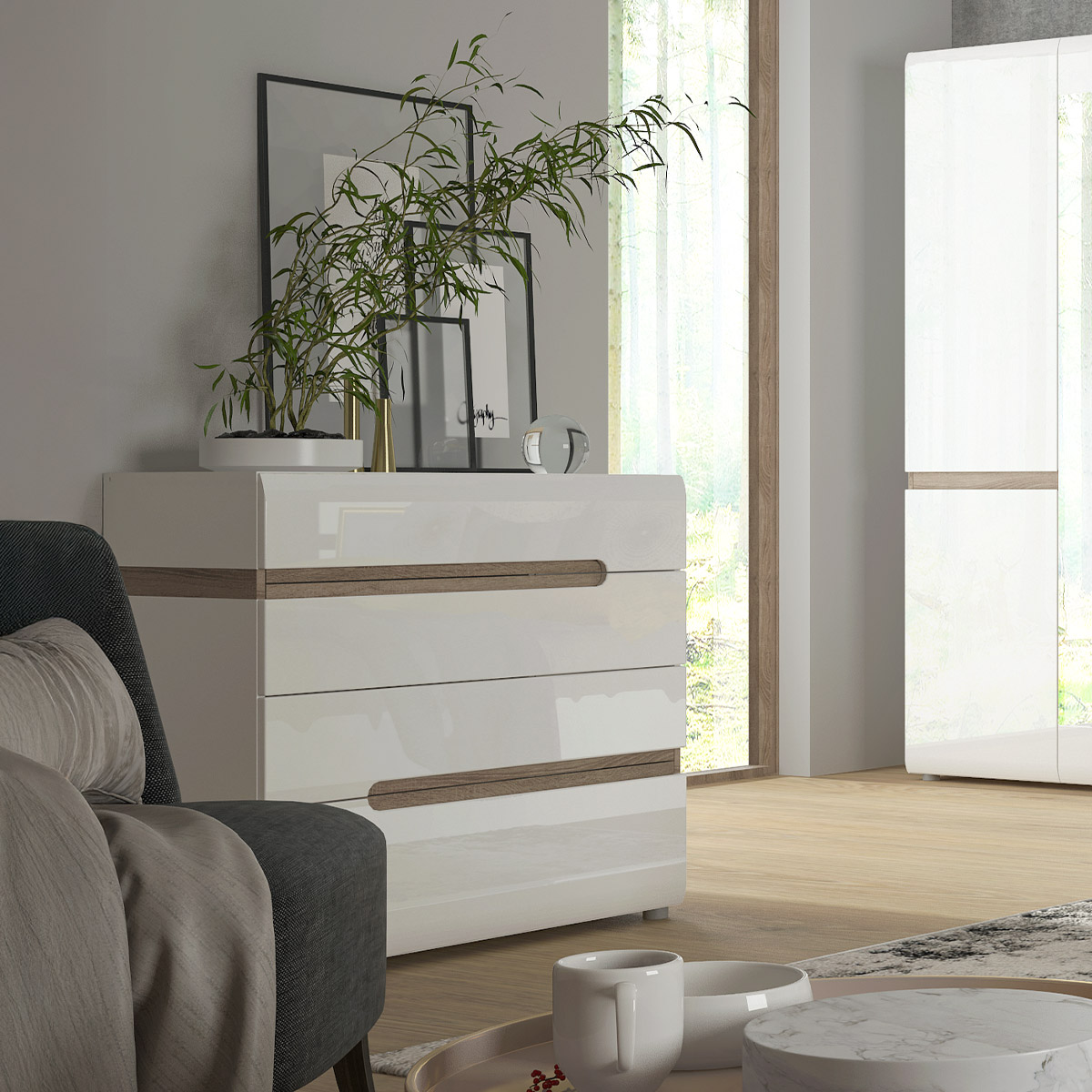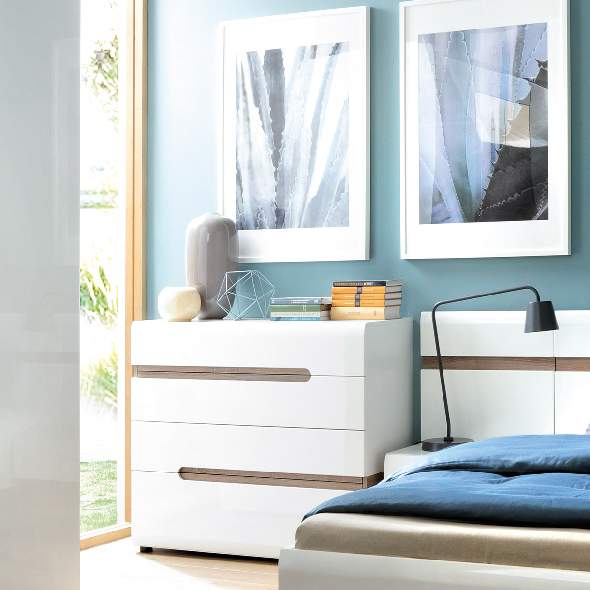 Usage instructions: The furniture should be used according to its intended purpose - in enclosed rooms and protected from weather conditions. It is not recommended to place hot objects on the furniture. To clean the surface, use a slightly damp, soft cloth, and then wipe dry. In case of stronger stains, mild cleaning agents intended for cleaning furniture can be used.