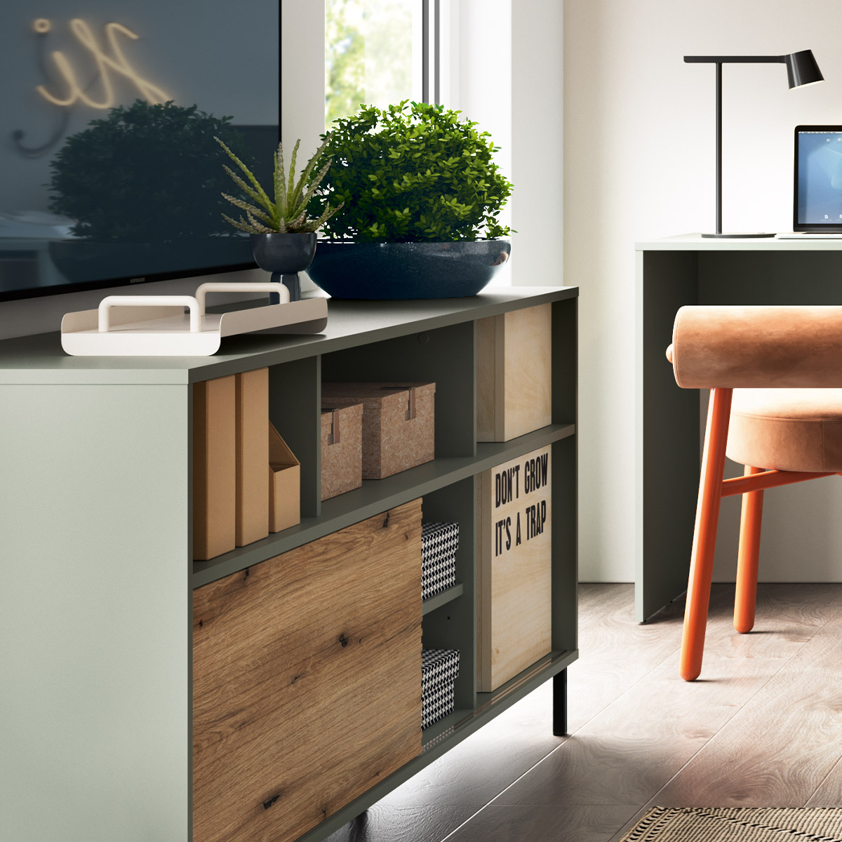 Colour scheme: The colours of the furniture shown in the photos may differ slightly from the actual appearance. This is primarily due to differences in lighting conditions (various parameters such as intensity and colour of light affect the perception of the furniture's colour), as well as individual monitor/screen settings. Additionally, in the case of fabrics, for technological reasons, the shade of the fabric may vary between different production batches.