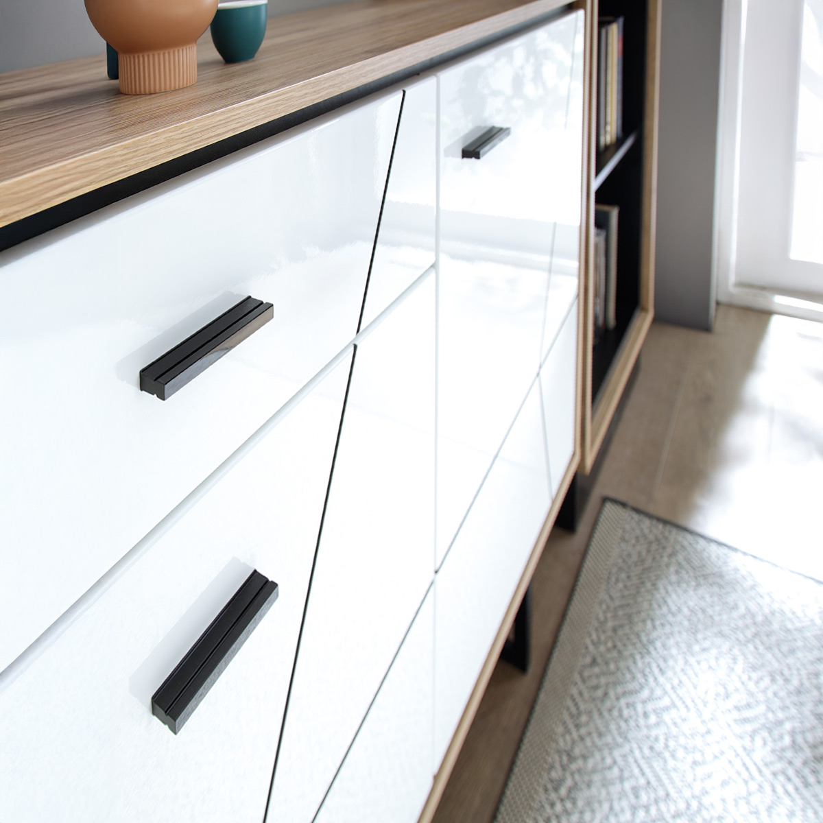Zasady użytkowania: Mebel powinien być użytkowany zgodnie z jego przeznaczeniem - w pomieszczeniach zamkniętych i zabezpieczonych przed działaniem warunków atmosferycznych. Nie zaleca się umieszczania na meblu gorących przedmiotów. Do czyszczenia powierzchni należy stosować lekko wilgotną, miękką tkaninę, następnie wytrzeć do sucha. W przypadku powstania silniejszych zabrudzeń można użyć łagodnych środków myjących przeznaczonych do czyszczenia mebli.