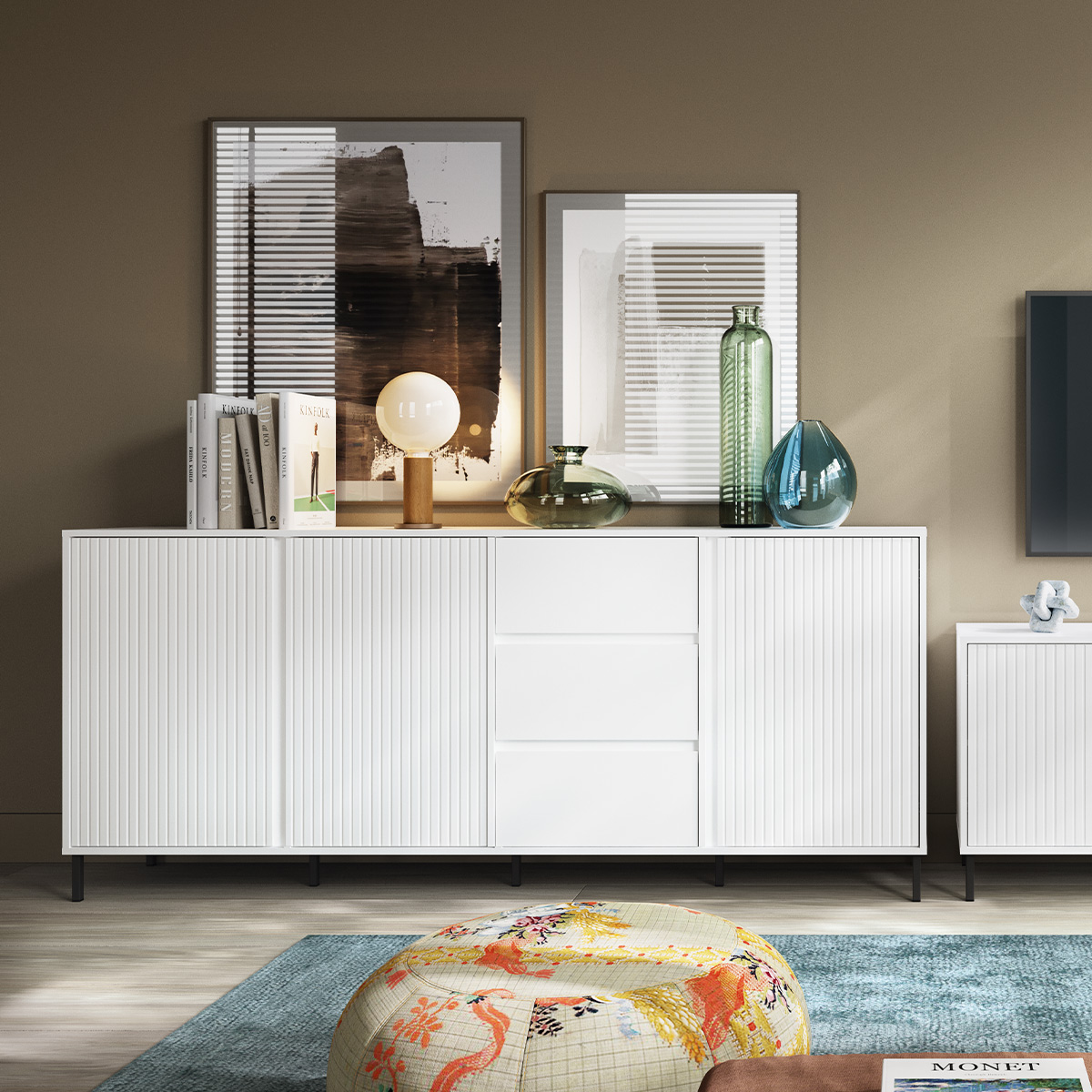 Kolorystyka: Kolory mebli prezentowanych na zdjęciach mogą nieznacznie różnić się od rzeczywistego wyglądu. Wynika to przede wszystkim z różnic w warunkach oświetleniowych (różne parametry takie jak natężenie i barwa światła wpływają na odbiór koloru mebla), a także indywidualnych ustawień monitora / ekranu. Dodatkowo w przypadku tkanin ze względów technologicznych odcień tkaniny może się różnić pomiędzy poszczególnymi partiami produkcyjnymi.