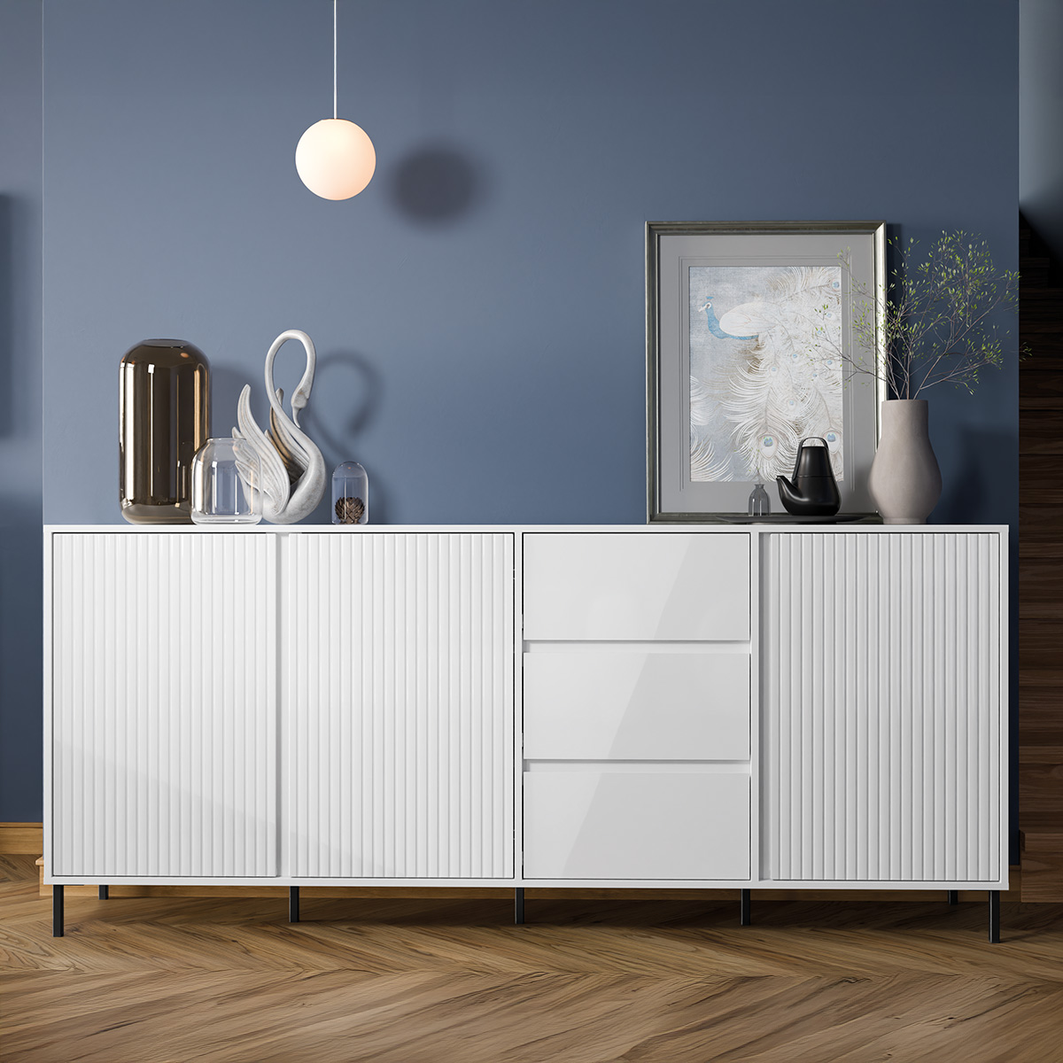 Bezpieczeństwo: Mebel należy trwale zamocować do ściany, aby uniknąć ryzyka związanego z przewróceniem się mebla lub spadnięciem elementu wiszącego. W paczce znajdują się elementy mocujące odpowiednie wyłącznie do ścian betonowych lub z pełnej cegły. Jeśli Twoja ściana wykonana jest z innego materiału lub nie masz pewności co do budowy tej ściany, skonsultuj się w kwestii montażu ze specjalistą.