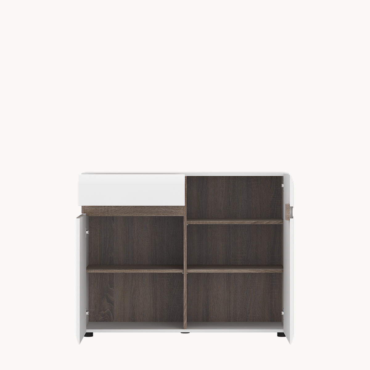 Zasady użytkowania: Mebel powinien być użytkowany zgodnie z jego przeznaczeniem - w pomieszczeniach zamkniętych i zabezpieczonych przed działaniem warunków atmosferycznych. Nie zaleca się umieszczania na meblu gorących przedmiotów. Do czyszczenia powierzchni należy stosować lekko wilgotną, miękką tkaninę, następnie wytrzeć do sucha. W przypadku powstania silniejszych zabrudzeń można użyć łagodnych środków myjących przeznaczonych do czyszczenia mebli.