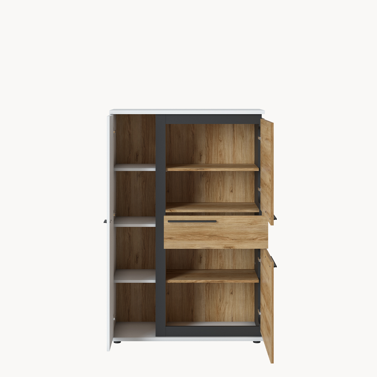 Zasady użytkowania: Mebel powinien być użytkowany zgodnie z jego przeznaczeniem - w pomieszczeniach zamkniętych i zabezpieczonych przed działaniem warunków atmosferycznych. Nie zaleca się umieszczania na meblu gorących przedmiotów. Do czyszczenia powierzchni należy stosować lekko wilgotną, miękką tkaninę, następnie wytrzeć do sucha. W przypadku powstania silniejszych zabrudzeń można użyć łagodnych środków myjących przeznaczonych do czyszczenia mebli.