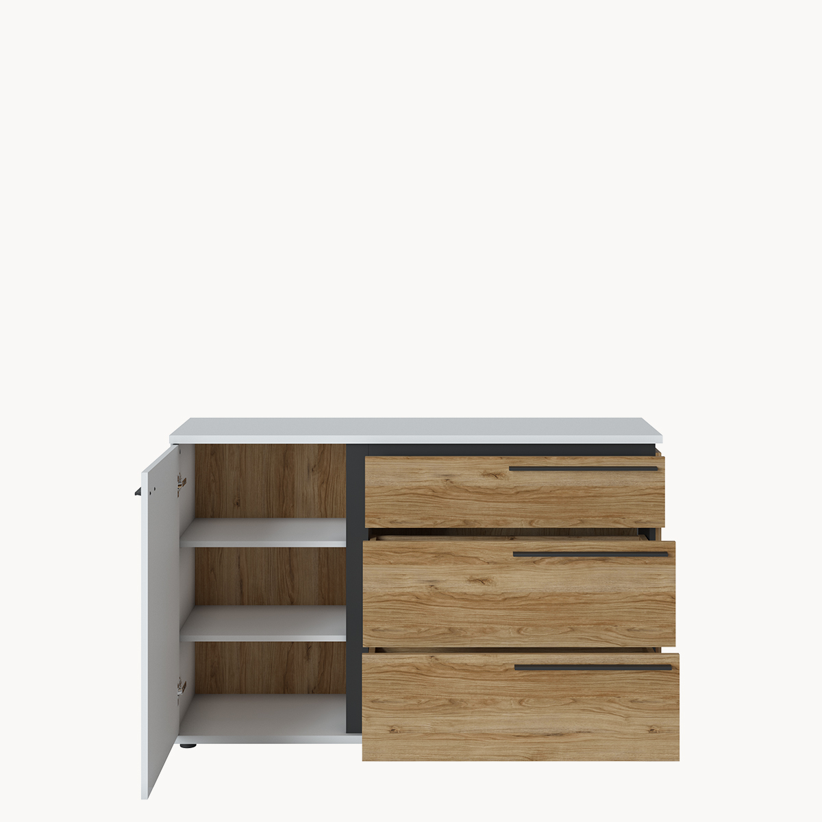 Zasady użytkowania: Mebel powinien być użytkowany zgodnie z jego przeznaczeniem - w pomieszczeniach zamkniętych i zabezpieczonych przed działaniem warunków atmosferycznych. Nie zaleca się umieszczania na meblu gorących przedmiotów. Do czyszczenia powierzchni należy stosować lekko wilgotną, miękką tkaninę, następnie wytrzeć do sucha. W przypadku powstania silniejszych zabrudzeń można użyć łagodnych środków myjących przeznaczonych do czyszczenia mebli.