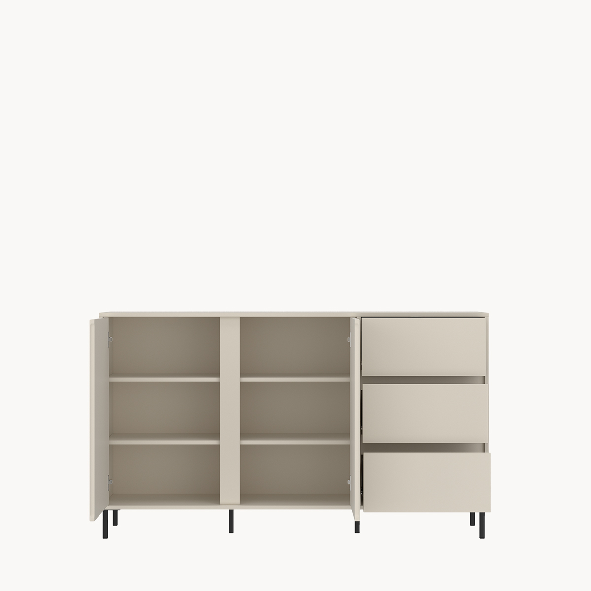 Komoda z 3 -szufladami, kaszmir, ryfle, metalowe nóżki – TYP AVEK01