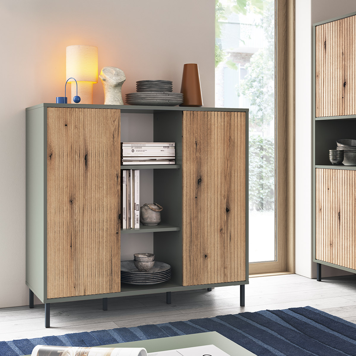 Zasady użytkowania: Mebel powinien być użytkowany zgodnie z jego przeznaczeniem - w pomieszczeniach zamkniętych i zabezpieczonych przed działaniem warunków atmosferycznych. Nie zaleca się umieszczania na meblu gorących przedmiotów. Do czyszczenia powierzchni należy stosować lekko wilgotną, miękką tkaninę, następnie wytrzeć do sucha. W przypadku powstania silniejszych zabrudzeń można użyć łagodnych środków myjących przeznaczonych do czyszczenia mebli.