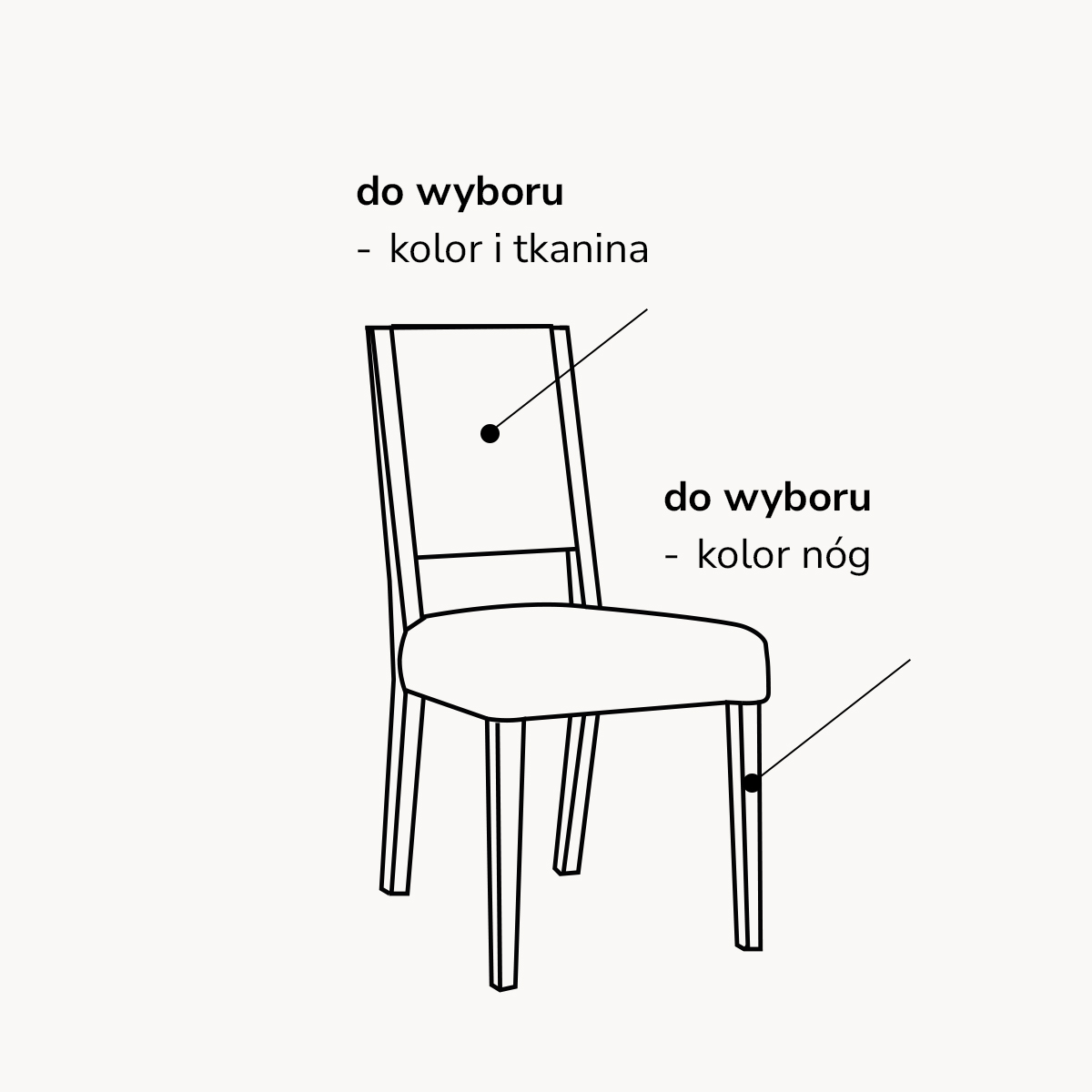 Zasady użytkowania: Krzesła są meblami, przeznaczonymi do siedzenia. Nie należy stawać, kołysać się, skakać ani klękać na siedzisku, gdyż może to spowodować wypadek lub uszkodzenie elementów mebli. Jedno krzesło jest przeznaczone do siedzenia dla jednej osoby. Krzesła gwarantują bezpieczne użytkowanie dla osób o wadzie do 120kg.
