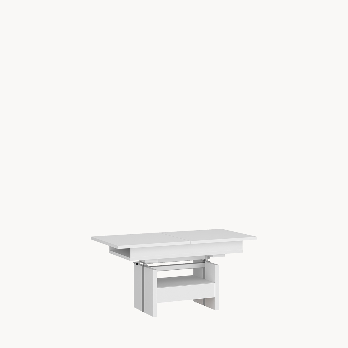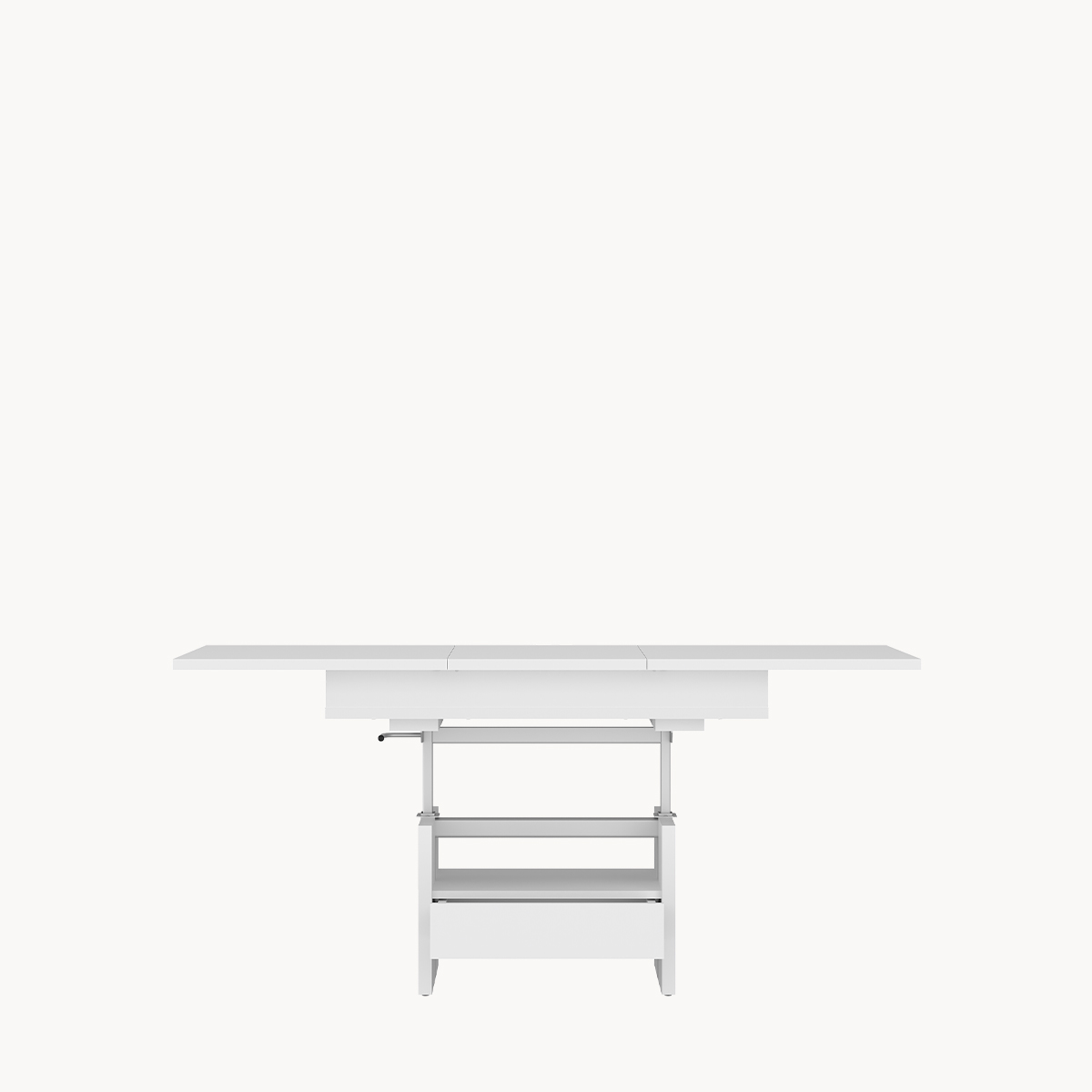 Ławostół z szufladą i półką, rozsuwany i podnoszony blat, biały