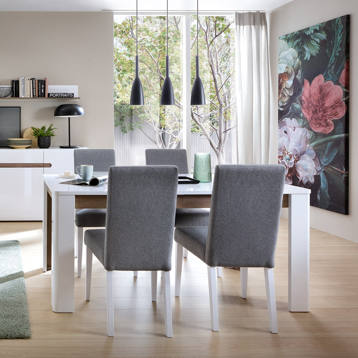 Kolorystyka: Kolory mebli prezentowanych na zdjęciach mogą nieznacznie różnić się od rzeczywistego wyglądu. Wynika to przede wszystkim z różnic w warunkach oświetleniowych (różne parametry takie jak natężenie i barwa światła wpływają na odbiór koloru mebla), a także indywidualnych ustawień monitora / ekranu. Ze względów technologicznych odcień tkaniny może różnić się od próbki prezentowanej w katalogu o jeden ton barwy.