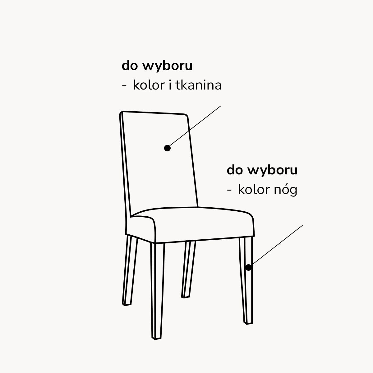 Zasady użytkowania: Krzesła są meblami, przeznaczonymi do siedzenia. Nie należy stawać, kołysać się, skakać ani klękać na siedzisku, gdyż może to spowodować wypadek lub uszkodzenie elementów mebli. Jedno krzesło jest przeznaczone do siedzenia dla jednej osoby. Krzesła gwarantują bezpieczne użytkowanie dla osób o wadzie do 120kg.