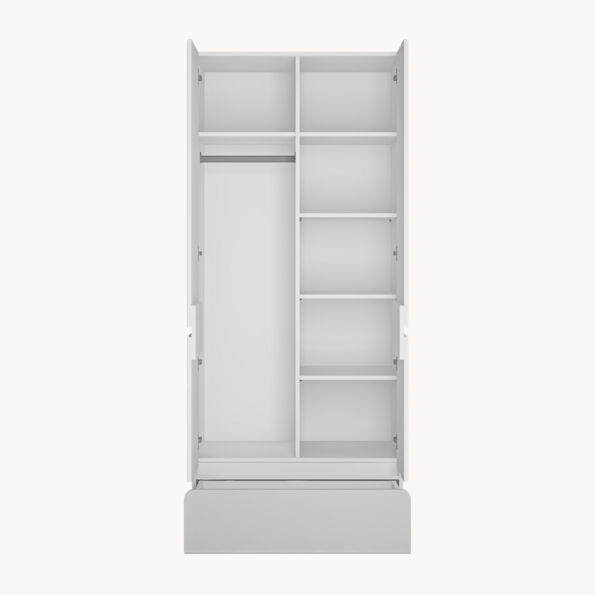 Bezpieczeństwo: Mebel należy trwale zamocować do ściany, aby uniknąć ryzyka związanego z przewróceniem się mebla lub spadnięciem elementu wiszącego. W paczce znajdują się elementy mocujące odpowiednie wyłącznie do ścian betonowych lub z pełnej cegły. Jeśli Twoja ściana wykonana jest z innego materiału lub nie masz pewności co do budowy tej ściany, skonsultuj się w kwestii montażu ze specjalistą.