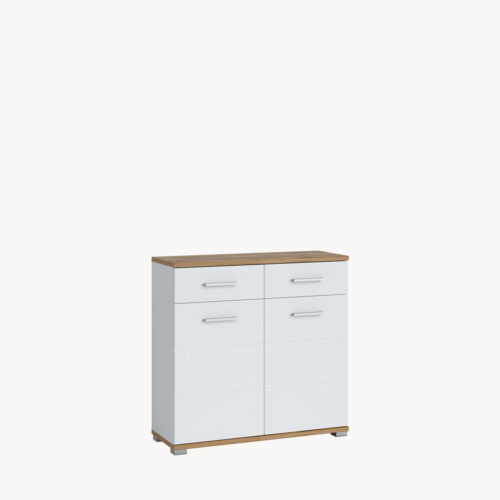 Komoda 2-drzwiowa, 2 szuflady, biały połysk