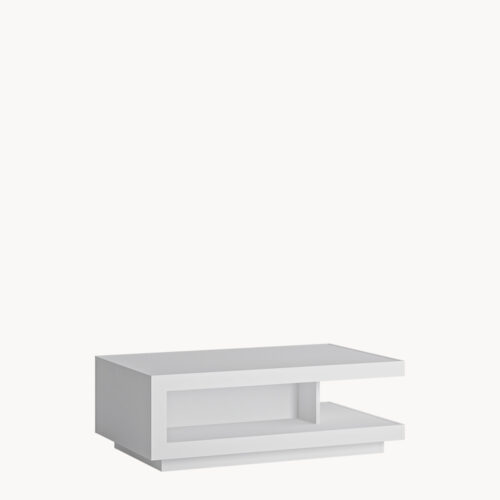 Stolik kawowy asymetryczny, z półką, biały połysk