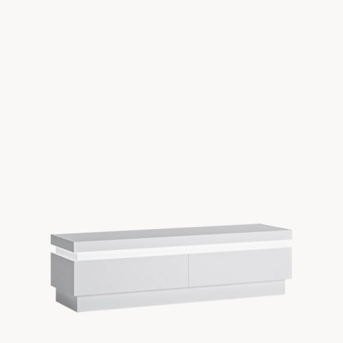 Szafka pod telewizor, 2 szuflady, podświetlana, biały połysk