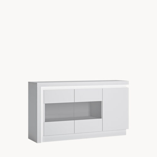 Witryna szeroka, lewostronna, przeszklone boki, podświetlana, biały połysk