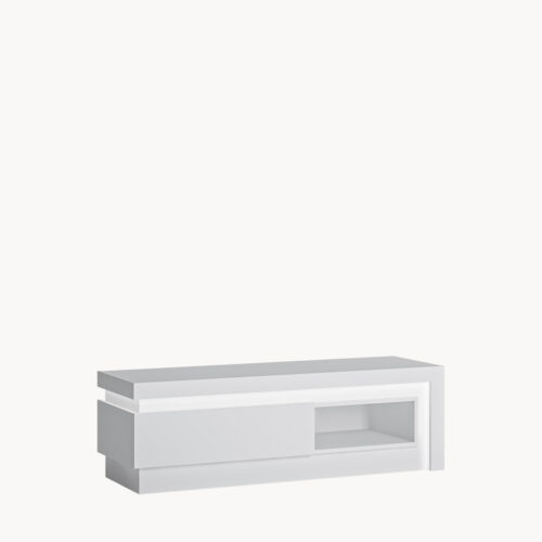 Szafka pod telewizor z szufladą i półką, podświetlana, biały połysk