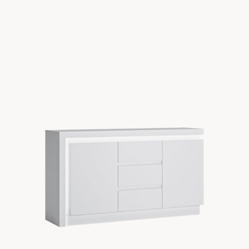 Komoda 3-drzwiowa z przeszkleniem, podświetlana, biały połysk