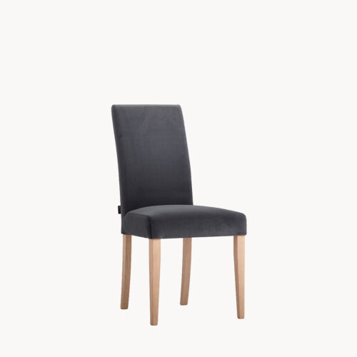Krzesło tapicerowane z wysokim oparciem, drewniane nogi, grafit