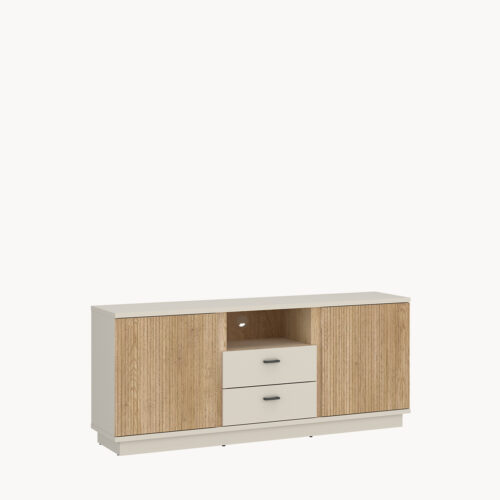 Komoda RTV z szufladami, kaszmir, z ryflami i metalowymi uchwytami