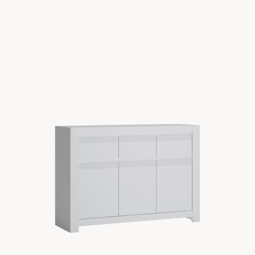 Kolekcja Novi to prosta, elegancka forma, która z całą pewnością przetrwa próby zmieniających się trendów. Gładka powierzchnia białych frontów została przełamana ryflowanymi listwami w tym samym kolorze. Tradycyjne uchwyty zastąpiono wygodnym systemem bezuchwytowym. W pełni wysuwane szuflady, prowadnice synchroniczne w stole i wysokiej jakości, matowe fronty mdf pozwolą utrzymać ład i porządek. Uniwersalność brył pozwala na aranżacje pokoju dziennego, jadalnianego jak i młodzieżowego.