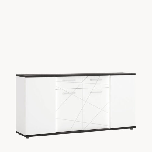 Komoda podświetlana z 4 drzwiczkami i 2 szufladami, biały połysk