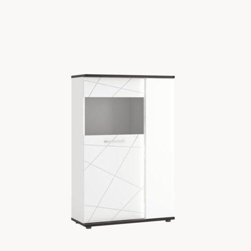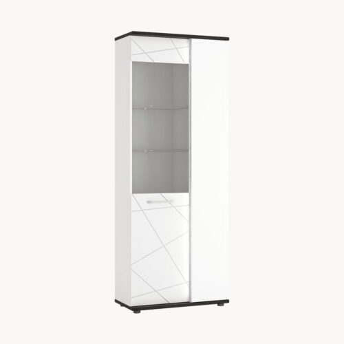 Witryna wysoka z przeszkleniem i podświetleniem, drzwi prawostronne, biały połysk