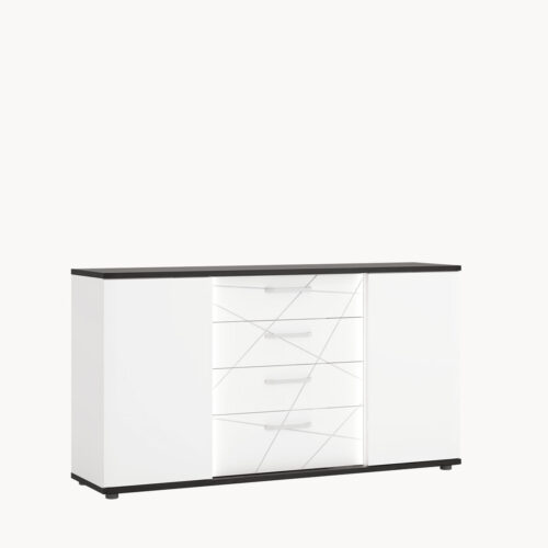 Komoda 4-drzwiowa z 2 szufladami, podświetlana, biały połysk, dąb czarny
