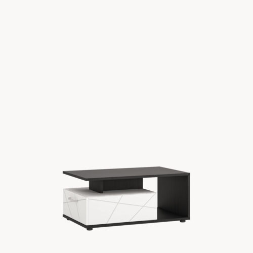 Stolik kawowy z szufladą, biały połysk i czarny dąb