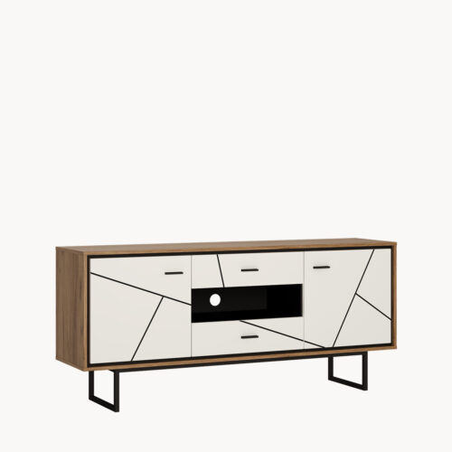 Komoda 2-drzwiowa pod TV na stelażu, 2 szuflady, biały połysk