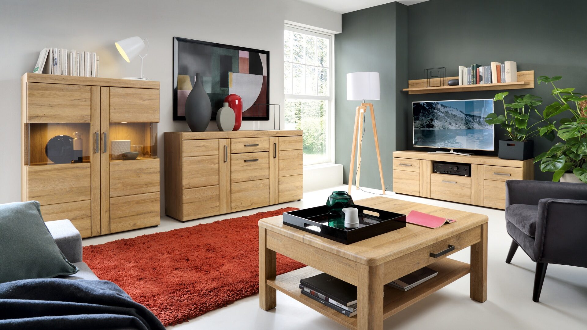 Półka wisząca do salonu, dekor drewno