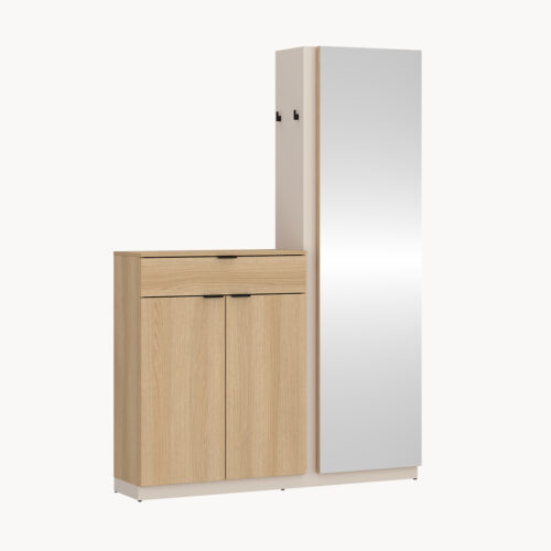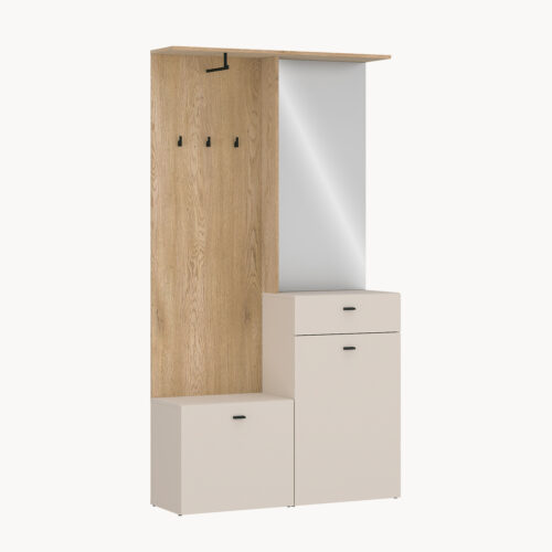 Garderoba do przedpokoju z lustrem, wieszakami i szafką, dekor dąb i kaszmir
