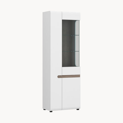 Drugą kluczową cechą jest wysokość mebla. Pionowe szafy zajmują mniejszą powierzchnię i doskonale sprawdzają się jako witryny narożne do salonu. Z kolei niskie modele, niczym komody pozwalają dodatkowo wykorzystać swoją górną powierzchnię jako blat. Można na nim ustawić sprzęt RTV albo zaaranżować jako kolejną eskpozycję.